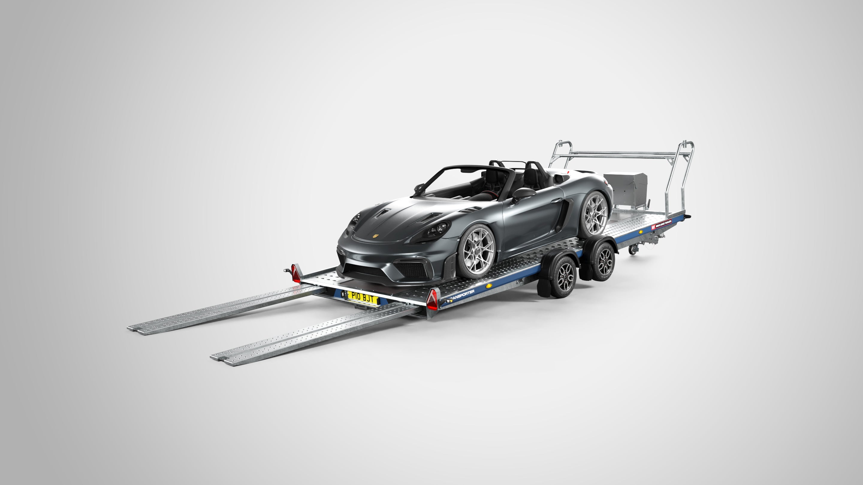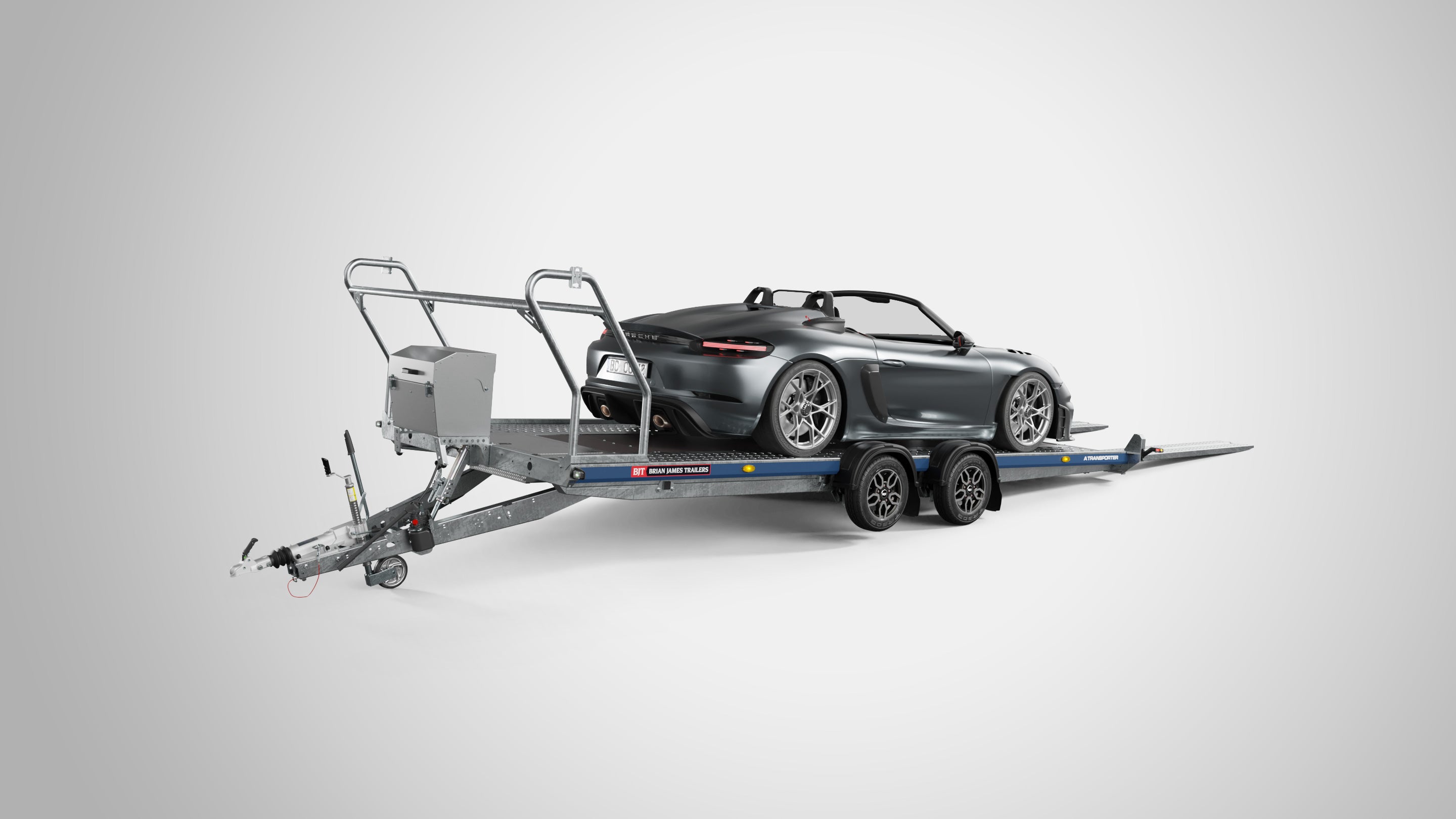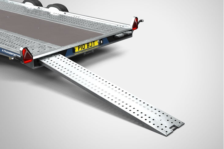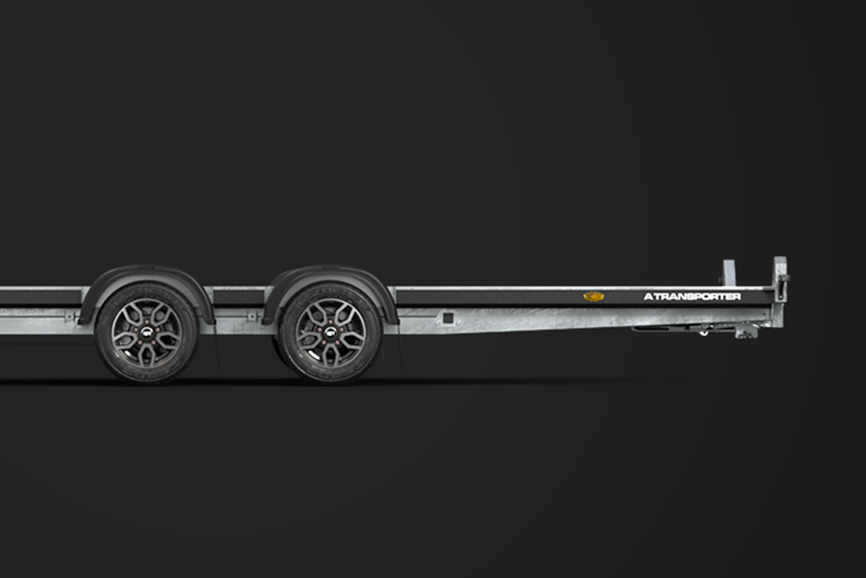 A twin-axle open car trailer with a gross capacity of up to 3500kg, suited for vehicle recovery, transport logistics and motorsport. Available in bed lengths from 4m to 5.5m, the A Transporter features easy glide, internally stored ramps and a flush centre deck.