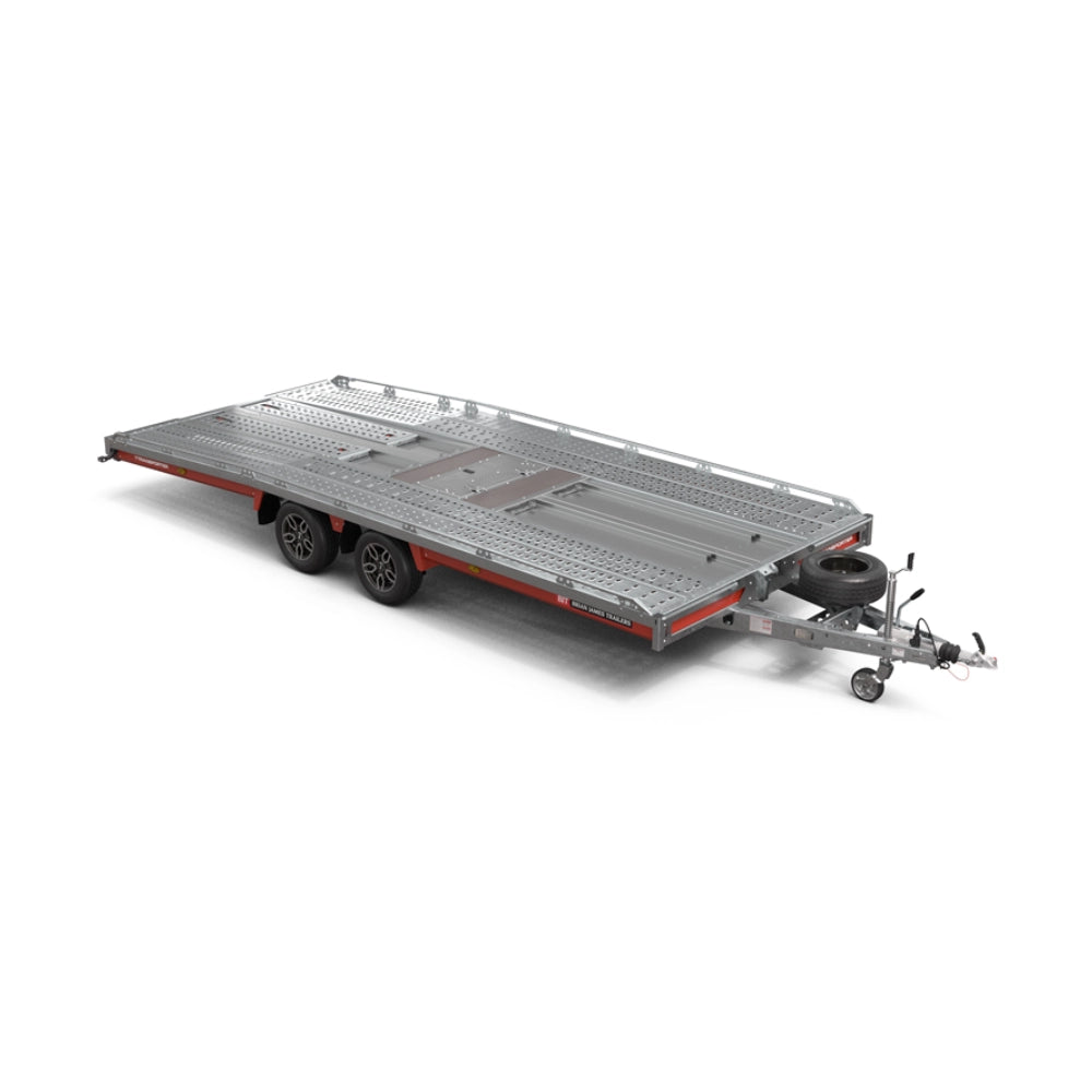 An open car trailer used by logistics professionals. Available in twin or tri-axle variants with 3500Kg gross capacity, the T Transporter is available with a wide range of options.